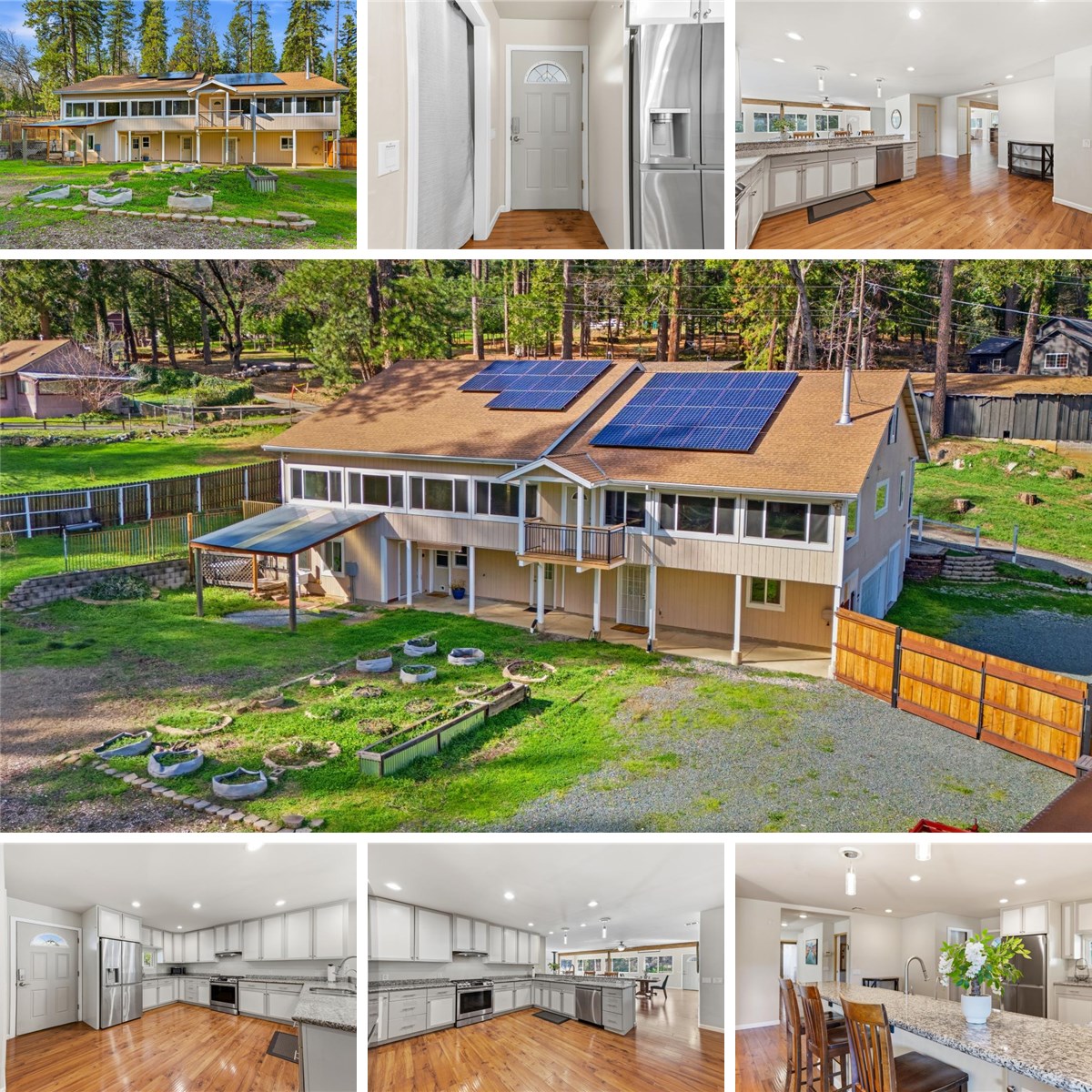 Outdoors, the property truly shines. A full solar system keeps utility costs low, while a spring-fed irrigation system with 6,000-gallon storage nourishes established garden beds and fruit trees, with plenty of room to expand your vision. Enjoy evenings under the stars in the hot tub with cold plunge, rinse off in the outdoor clawfoot tub and shower, or gather in one of several inviting outdoor living spaces designed for connection and relaxation.